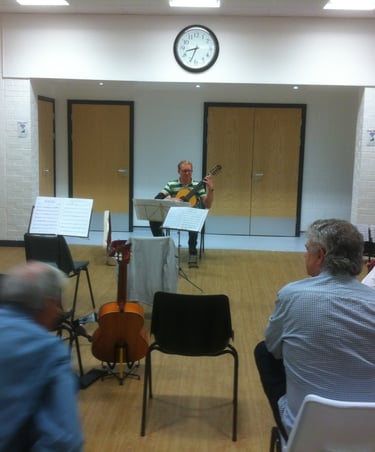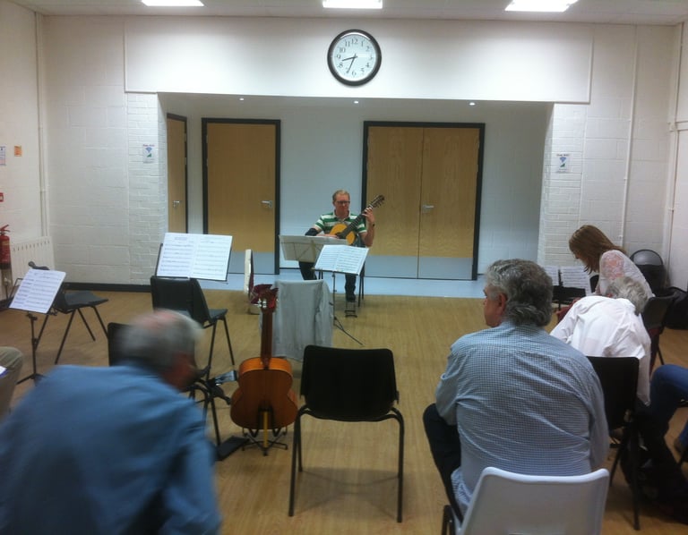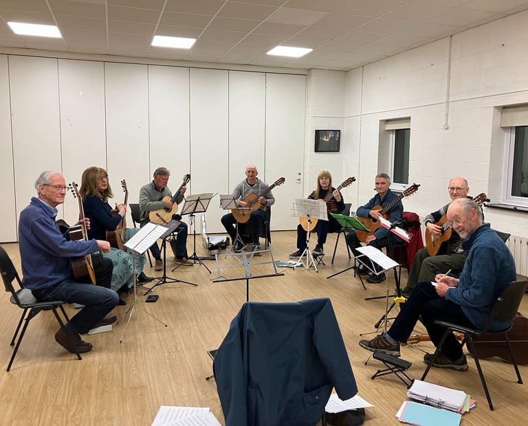 We are a friendly, non-competitive society for classical guitar players who enjoy making music together. Our meetings combine ensemble playing with ample opportunities for members to give short recitals to a friendly audience.